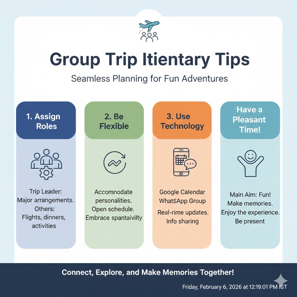 Setting up a Google calendar or WhatsApp group would help to organize better. It will enable real-time communication among all travelers. It ensures everyone gets important information.